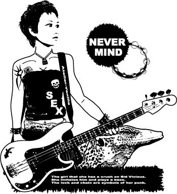 ベースを持った女の子は、シド・ヴィシャスっぽく描きました。