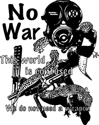 ヒョウモントカゲモドキをデザインしました。イラストのモチーフとしては機関銃や刃物など、物騒なものが多いですが、反戦っぽいイメージで描いてます。